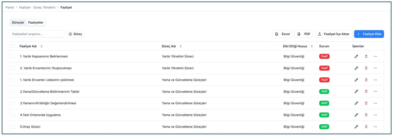 “Faaliyet ekranı, süreçleri oluşturan tüm alt adımları detaylarıyla birlikte görünür kılar.